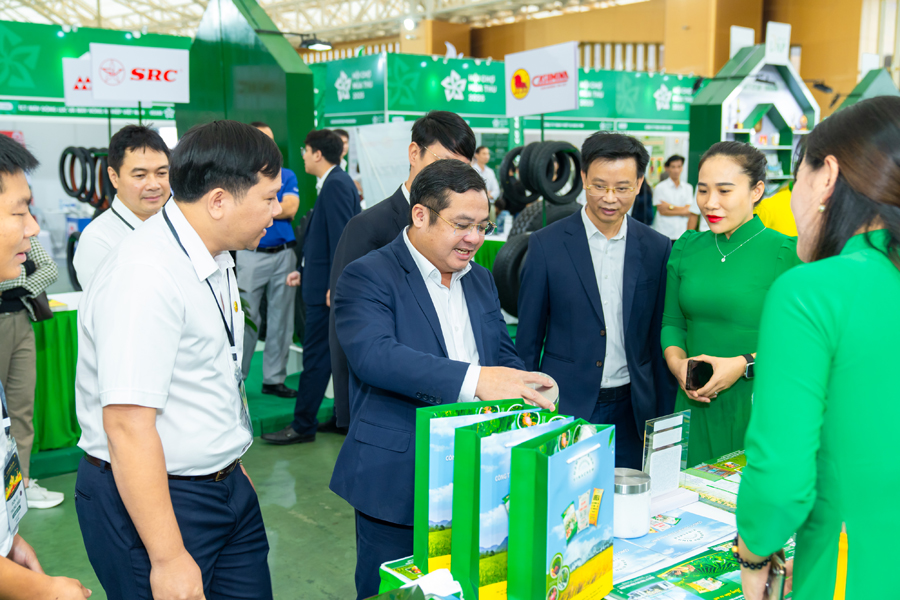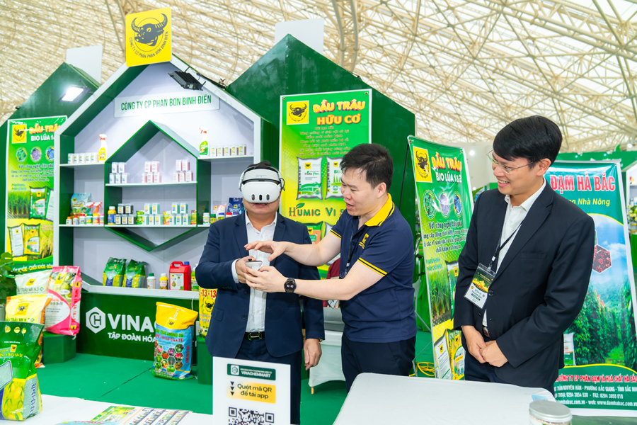 Trong buổi làm việc, Chủ tịch Phùng Quang Hiệp trực tiếp kiểm tra, ghi nhận và đánh giá cao công tác chuẩn bị của các đơn vị. Các gian hàng của Vinachem được thiết kế hiện đại, thể hiện rõ hình ảnh đổi mới và năng động của Tập đoàn, đồng thời giới thiệu hệ sinh thái sản phẩm phong phú: từ các mặt hàng phân bón chủ lực (Supe Lâm Thao, Đạm Hà Bắc, Đạm Ninh Bình, Phân bón Bình Điền, Miền Nam, Phân bón và Hóa chất Cần Thơ…) đến hóa chất cơ bản (Hóa chất Việt Trì…), sản phẩm cao su (Casumina, DRC, SRC…), sản phẩm pin, ắcquy (PINACO) và hàng tiêu dùng như bột giặt, chất tẩy rửa của LIX, HASO, OPLUS…, phục vụ trực tiếp đời sống và sản xuất nông nghiệp.